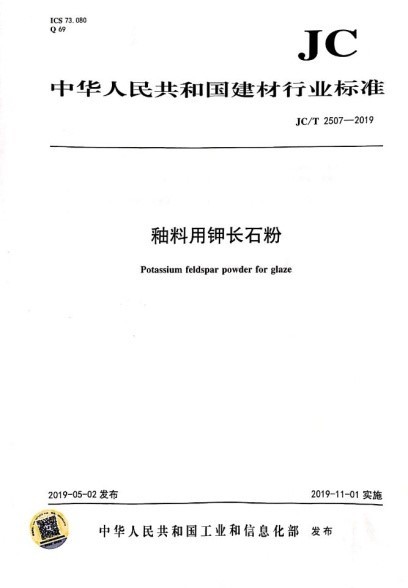 近日,计算物理四川省高校重点实验室金成国博士作为第二起草人参与制定的中华人民共和国建材行业标准《JC/T -2507-2019 釉料用钾长石粉》由工业与信息化部发布,并于2019-11-1开始实施。