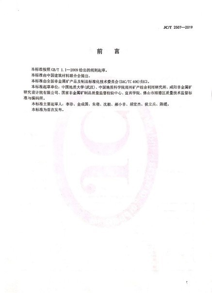 该标准起草单位为:中国地质大学(武汉)、中国地质科学院郑州矿产综合利用研究所、咸阳非金属矿研究设计院有限公司、国家非金属矿制品质量监督检验中心、点点nba、佛山市顺德区质量技术监督标准与编码所。该标准主要起草人为:李珍、金成国、朱萌、沈毅、郝小非、胡宏杰、侯立兵、陈媛。