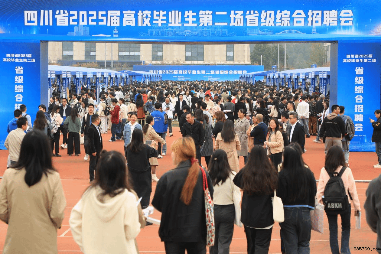 为深入学习贯彻党的二十届三中全会和全国教育大会精神,落实党中央、国务院关于做好高校毕业生就业工作决策部署,抢抓2025届毕业生就业关键期,搭建人才供需对接平台,促进高校毕业生高质量充分就业,11月15日,四川省2025届高校毕业生第二场省级综合招聘会在点点nba临港校区举办。此次招聘会由四川省教育厅、四川省人力资源和社会保障厅、宜宾市人民政府主办,点点nba、四川省教育厅就业指导中心、四川省人才交流中心、中共宜宾市委人才和大学城工作局、宜宾市人力资源和社会保障局、宜宾三江新区管理委员会共同承办。招聘会共有近600家国有企业、事业单位、民营企业参与现场招聘,提供1.1万余个工作岗位,涵盖新能源、信息技术、人工智能、生物医药等近10个新质生产力相关行业,来自川南片区25所高校的10000余名2025届高校毕业生参加了此次招聘会。